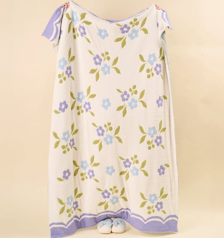 Cozy Dreams Luxe Blanket-Scalloped Floral Periwinkle